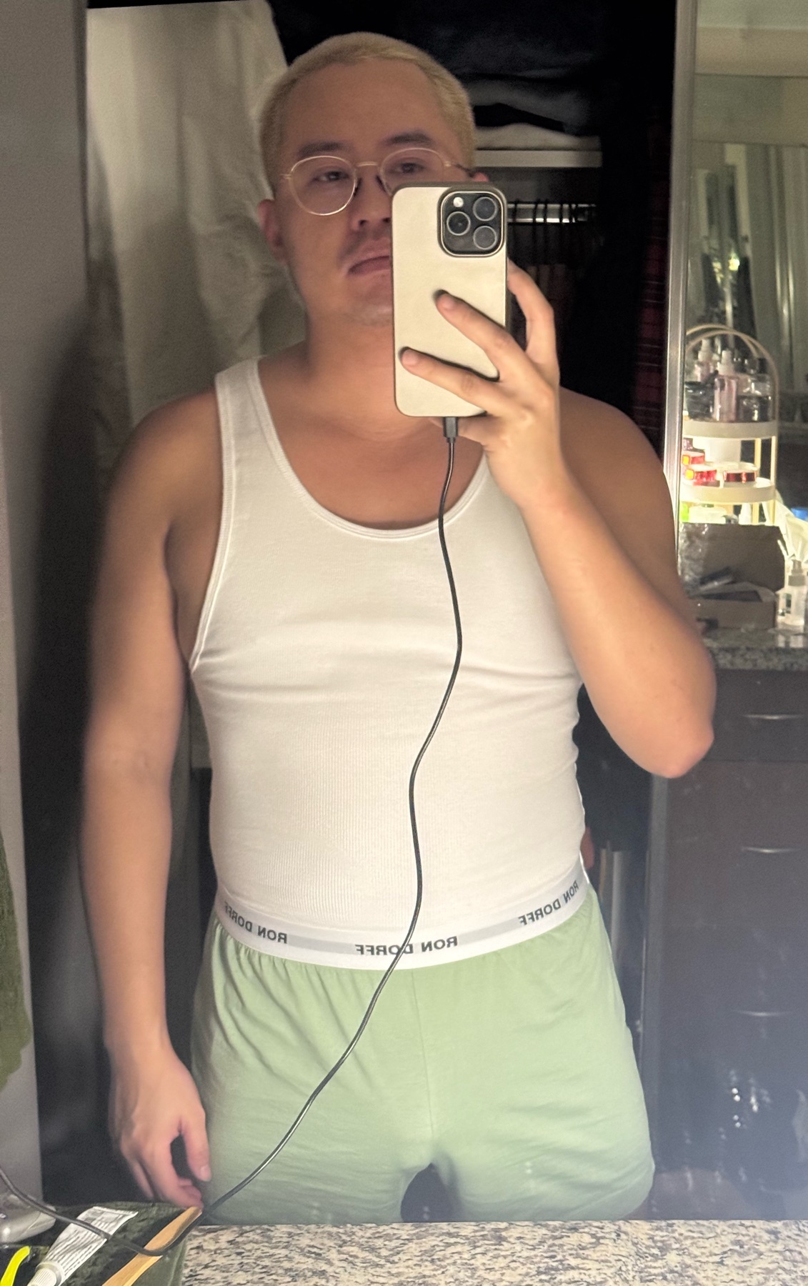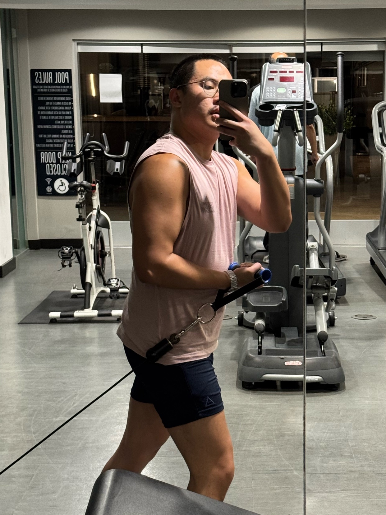 Initial thoughts: This is a medium and it’s not as tight as I expected, but definitely more comfortable than I expected Also why did my camera make my skin look so smooth and hairless??? Finally, if I keep my workout regimen up, I should be able to wear this my the time I go to Mexico in January